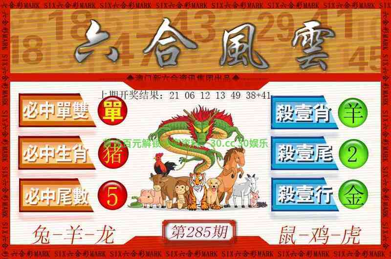285期:绝杀三肖👣【鸡牛龙】🐾开:马24中