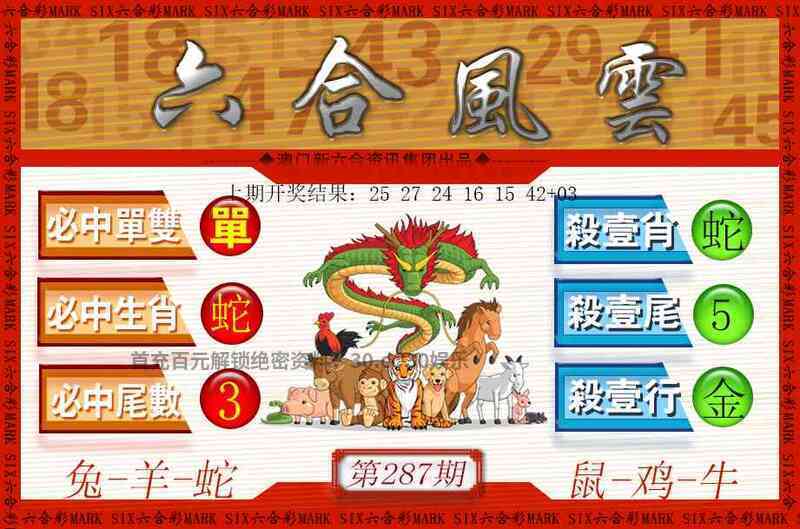 287期:绝杀三肖👣【牛鸡马】🐾开:猴34中